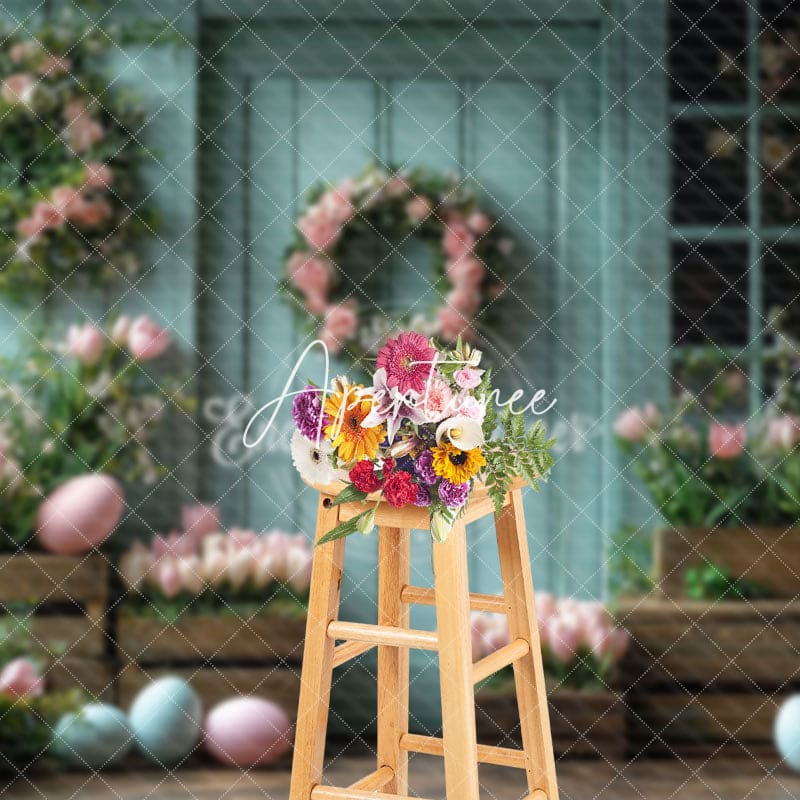 Aperturee Retro Blue Wood Floral Eggs Easter Spring Backdrop