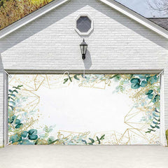 Aperturee Simple Green Leaves Gold Lines Garage Door Banner