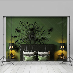 Aperturee Spiderweb Wall Decal Photography Backdrop, Green and Black Halloween Headboard, Spooky Bedroom Studio Photo Prop