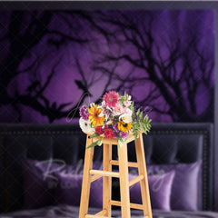 Aperturee Spooky Forest Wall Art Photography Backdrop, Purple Halloween Scene with Bats, Dark Moody Bedroom Photo Prop