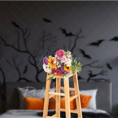Aperturee Spooky Tree Branch Headboard Photography Backdrop, Gothic Halloween Bedroom with Bats, Moody Dark Photo Prop