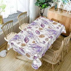 Aperturee Underwater Ocean Rectangle Tablecloth with Purple Jellyfish and Brown Snails, for Marine Life Decor