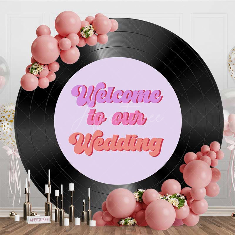Aperturee Vinyl Records Welcome To Our Wedding Round Backdrop