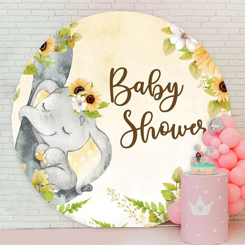 Elephant And Sunflower Circle Baby Shower Backdrop