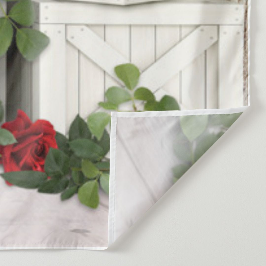 Red Rose Grass Light Stripe Wood Valentines Backdrop