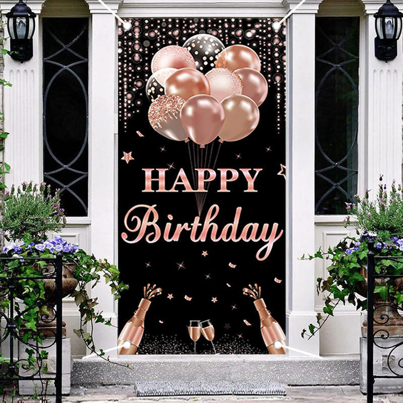 Rose Gold And Black Balloons Birthday Door Cover