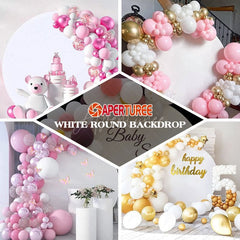 Aperturee personalized round backdrop covers are perfect for your kids birthday party, baby shower party, bridal shower, graduation and festival parties. All the sizes of this seamless backdrop come in one piece. The package only include a round backgrounds (not including stand).