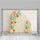 Aperturee Daisy Balloon Arch Cake Smash Backdrop, Pastel Rainbow Colors with Flowers, Groovy First Birthday Photo Prop