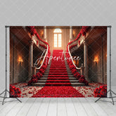 Aperturee Red Rose Stairs Romantic Valentines Day Backdrop