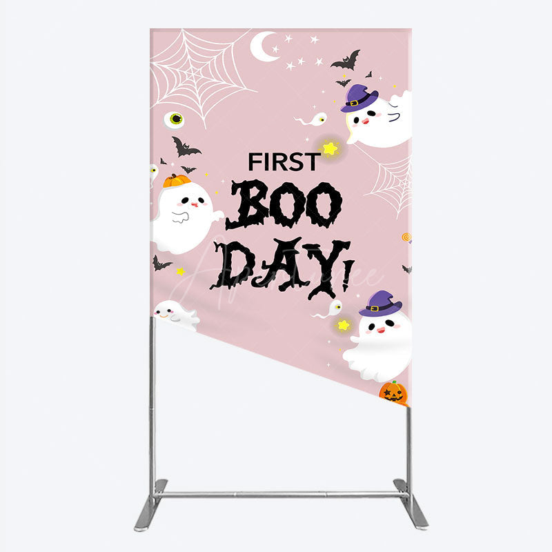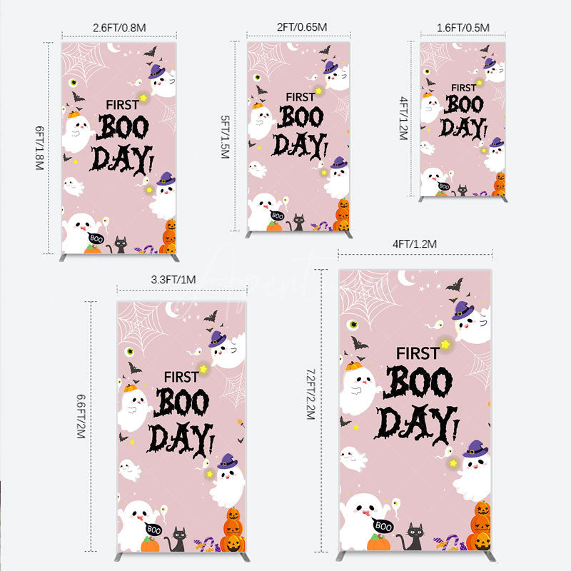 Aperturee First Boo Day Halloween Rectangle Backdrop for First Birthday, Cute Ghost and Pumpkin, Spooky Themed Party Photo Prop