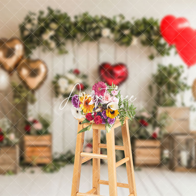 Aperturee Greenery Floral Balloons Wood Valentines Day Backdrop