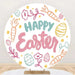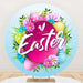 Aperturee Happy Easter Round Backdrop, Colorful Egg Twig Wreath Cover, Spring Floral Circle Background
