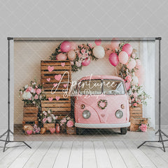 Aperturee Indoor Pink Bus Balloons Wood Romantic Backdrop