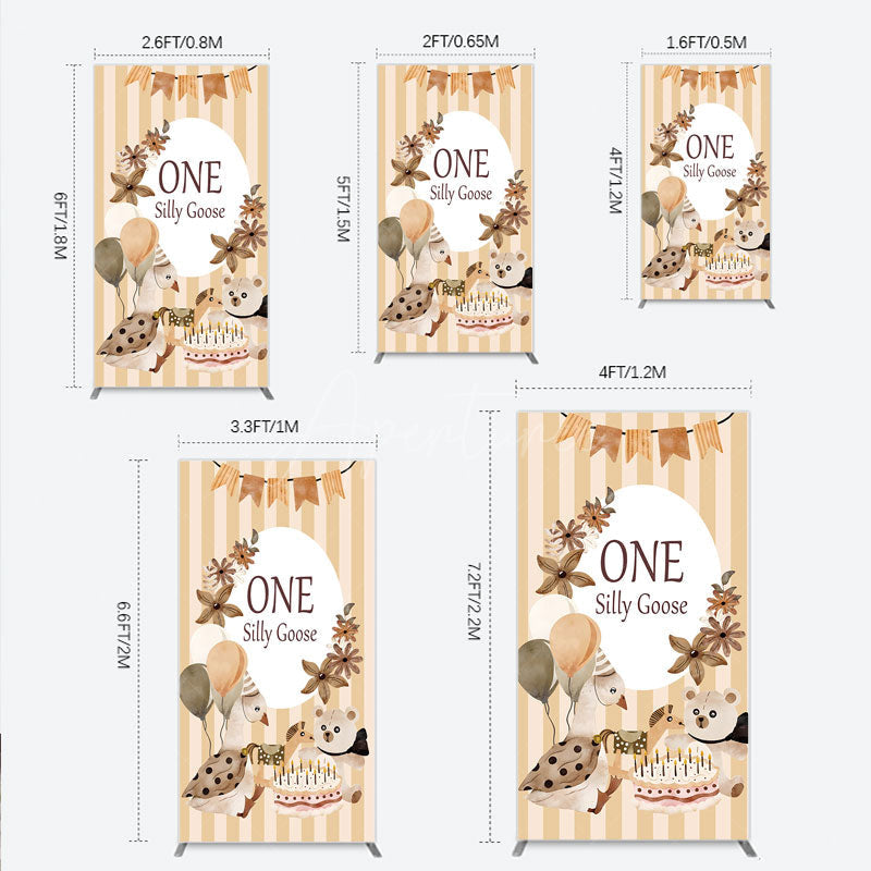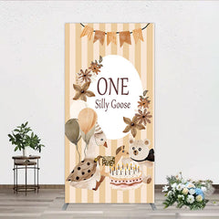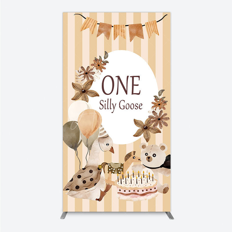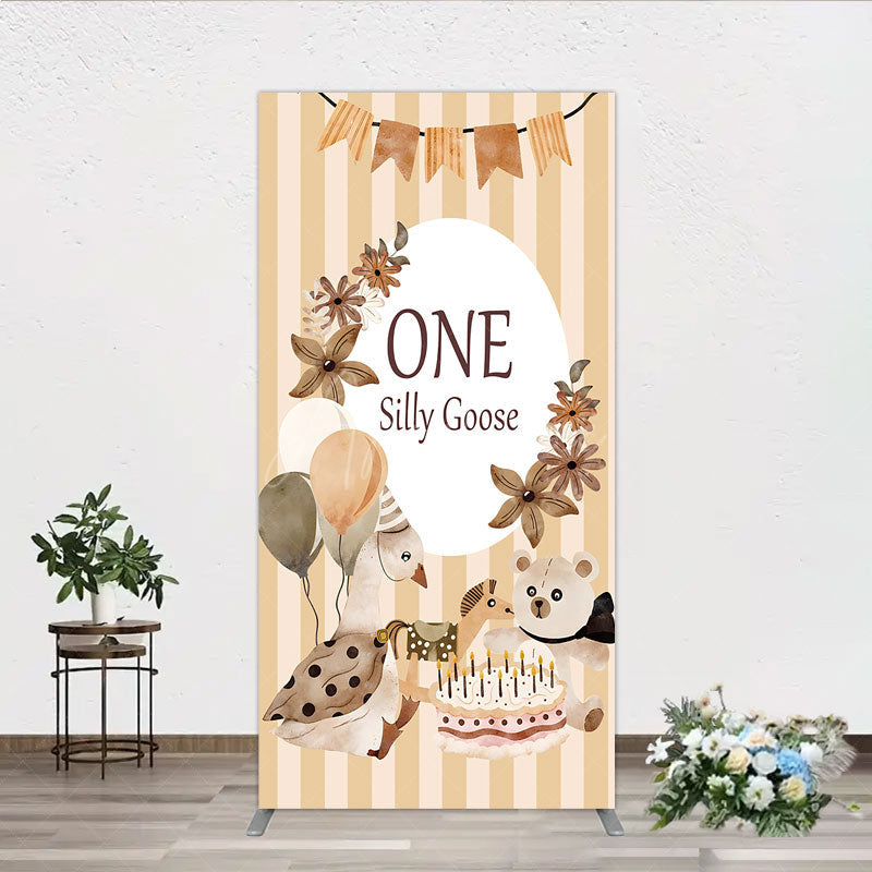 Aperturee One Silly Goose First Birthday Rectangle Backdrop, Farm Themed Party with Goose and Bear, Rustic Storybook Decor Prop
