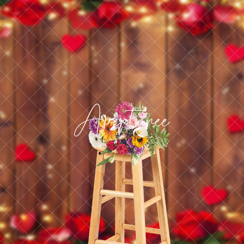 Aperturee Red Rose Hearts Brown Wood Valentines Day Backdrop