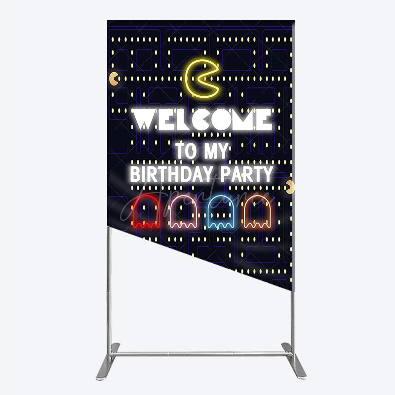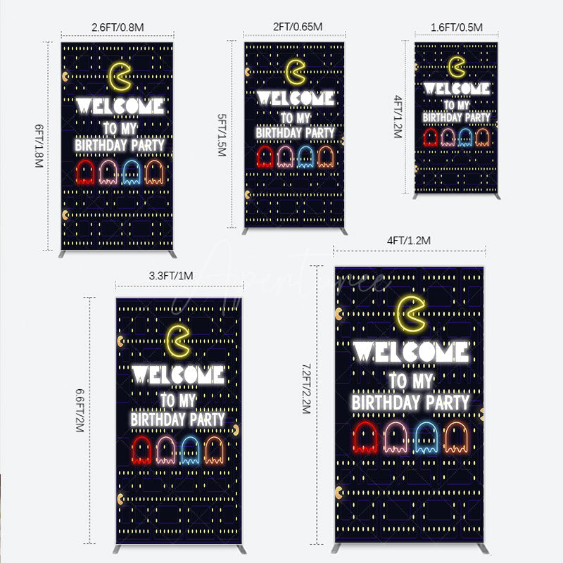 Aperturee Retro Arcade Game Birthday Rectangle Backdrop, Inspired 80s Video Game, Welcome to My Party Neon Sign Decor