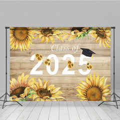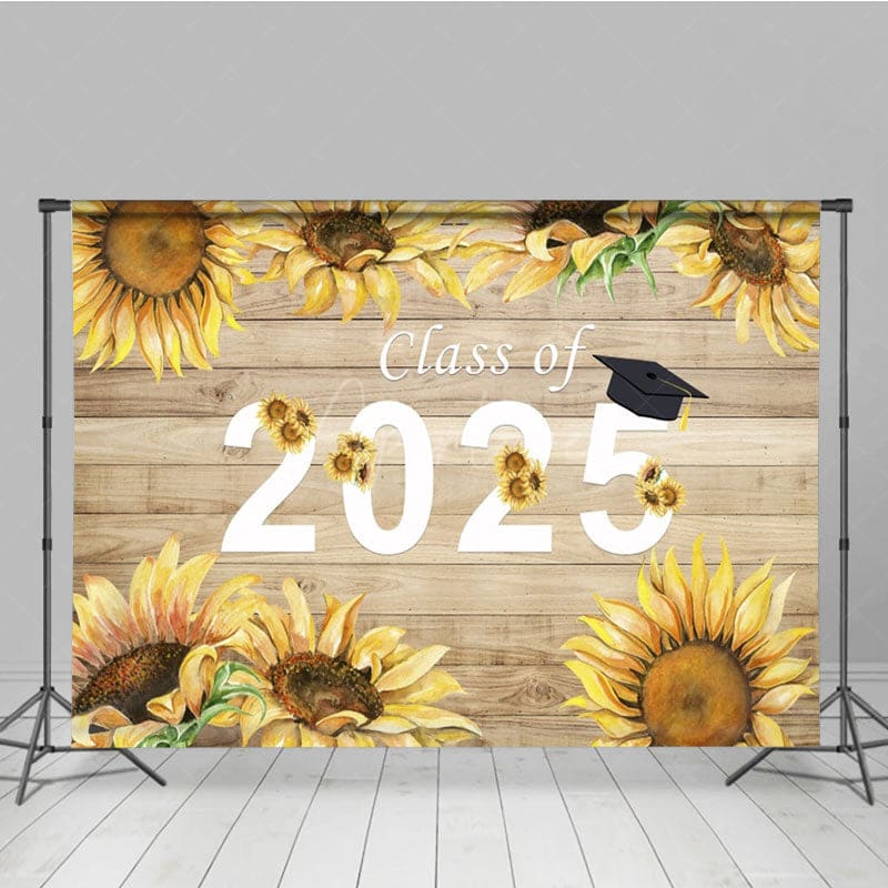 Aperturee Vintage Sunflower Wood Grain Congrats Grad Backdrop