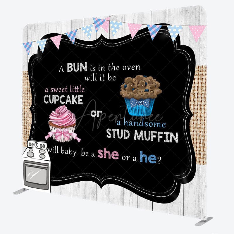 Aperturee Cute Dessert Gender Reveal Square Tension Backdrop