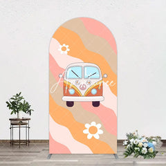 Aperturee Lets Get Groovy Boho Rainbow Car Floral Arch Backdrop