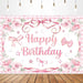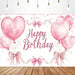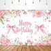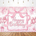 Aperturee Lovely Bows Balloons Happy Birthday Backdrop, Charming Pink Decor, Perfect for Girls