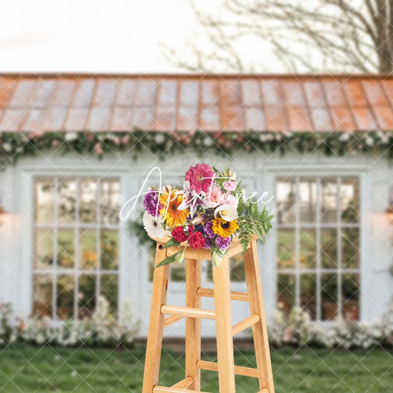 Aperturee Outdoor Lawn Cabin Wreath Green Spring Backdrop