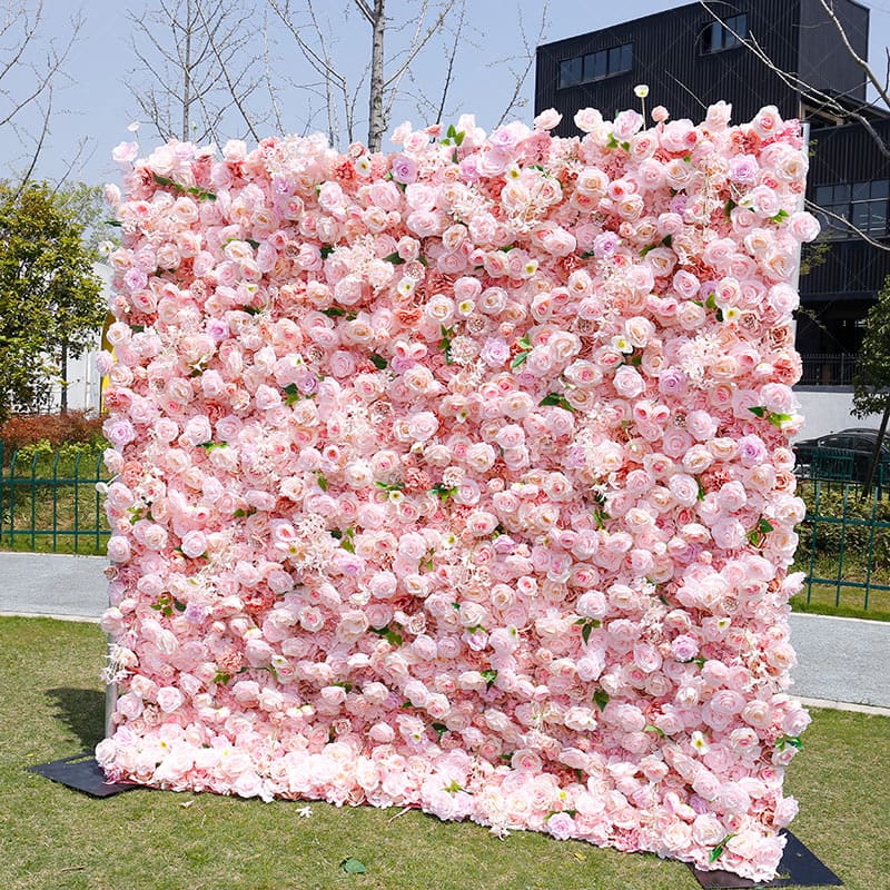 Aperturee Romantic Pink Rose Wedding Artificial Flower Wall