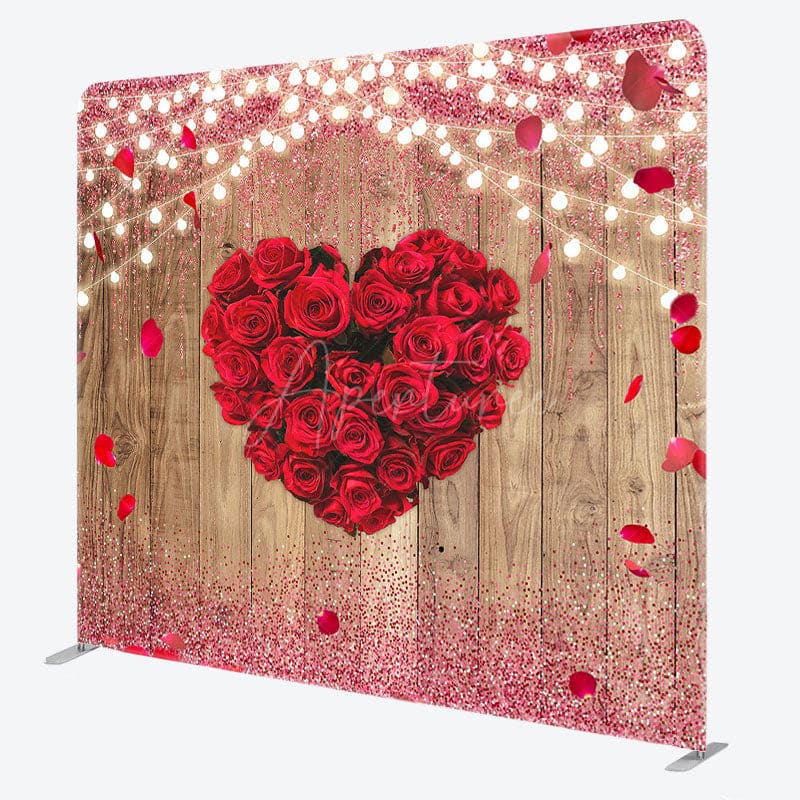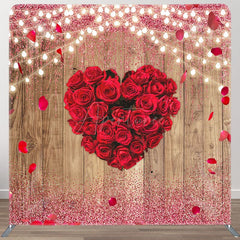 Aperturee Romantic Red Heart Rose Wooden Pillow Case Backdrop
