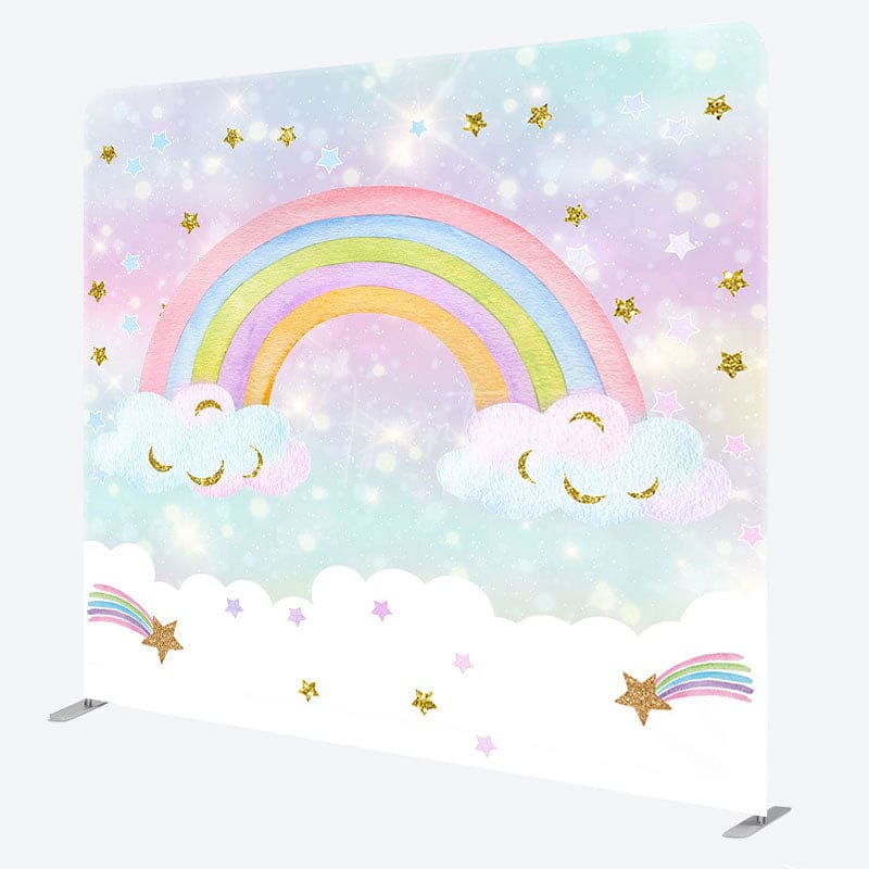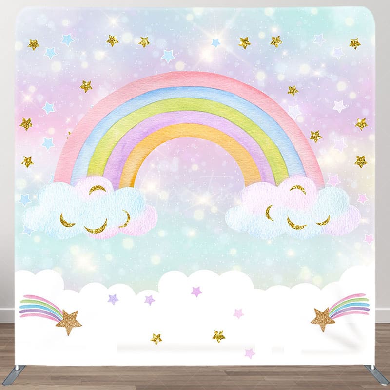 Aperturee Sparkle Stars Rainbow Birthday Pillow Case Backdrop