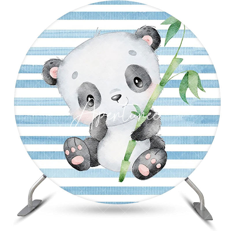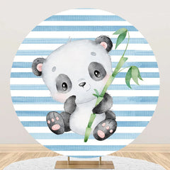 Blue White Bamboo Panda Round Baby Shower Backdrop