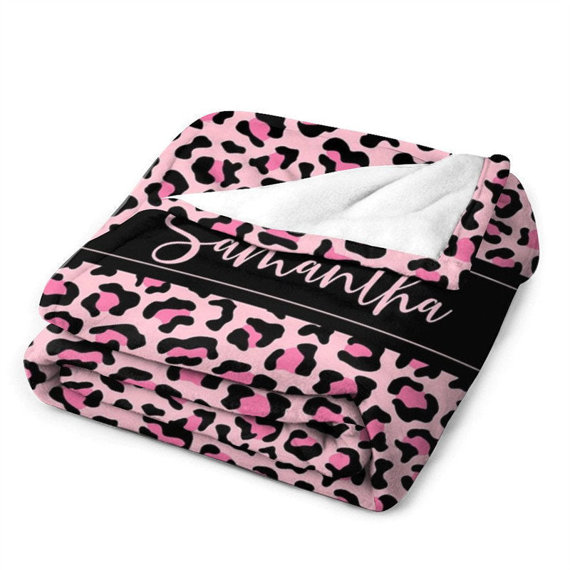Custom Name Stylish Pink Leopard Pattern Blanket