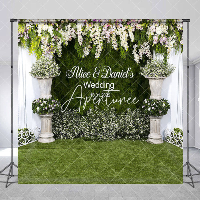 Green Lawn Floral Custom Backdrop For Wedding Party