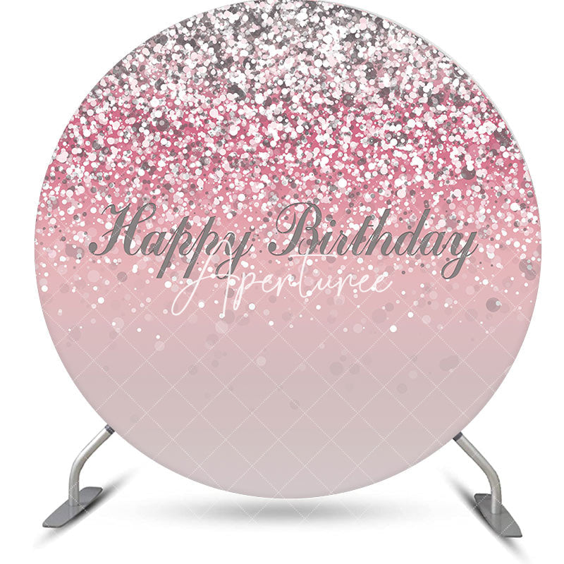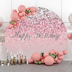 Pink Silver Glitter Bokeh Round Birthday Backdrop