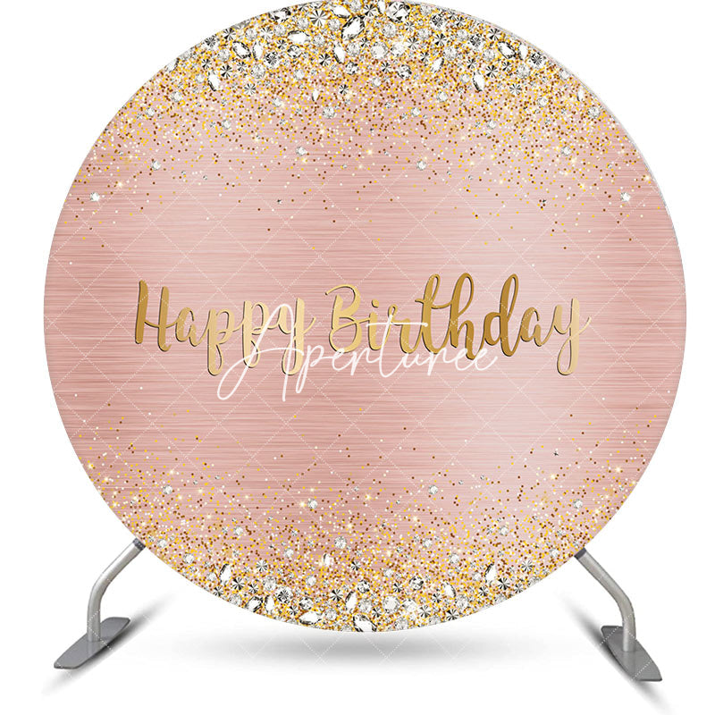 Rose Gold Silver Glitter Round Backdrop For Birthday