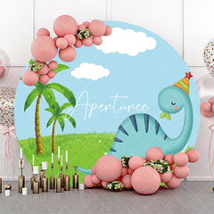 Round Blue Dinosaur Green Lawn Palm Trees Backdrop