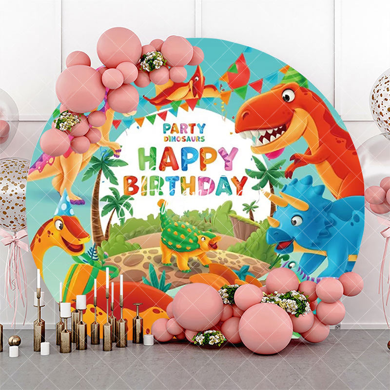 Round Colorful Dinosaurs Backdrop For Birthday Party