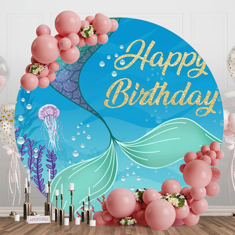 Round Undersea Glitter Mermaid Birthday Backdrop