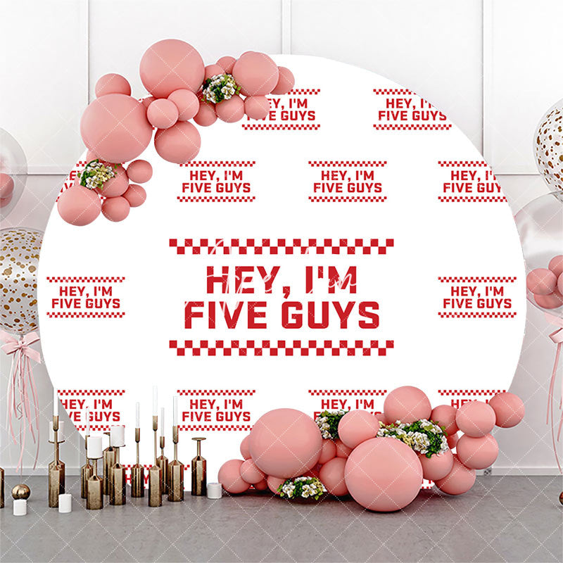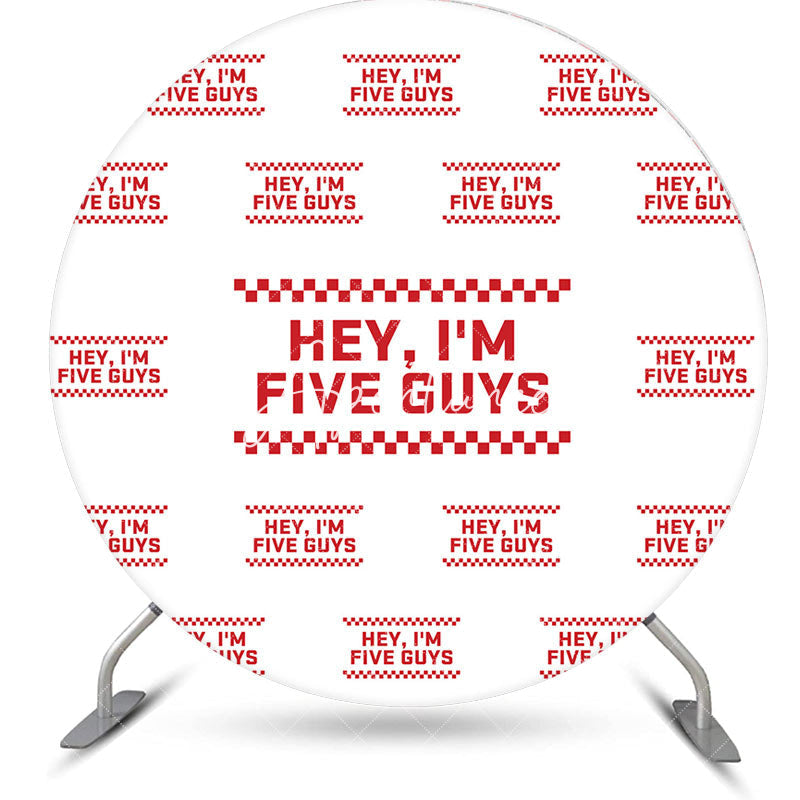 White Red Im Five Guys 5th Birthday Round Backdrop
