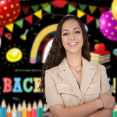 Crayon Stationery Rainbow Black Back To School Backdrop