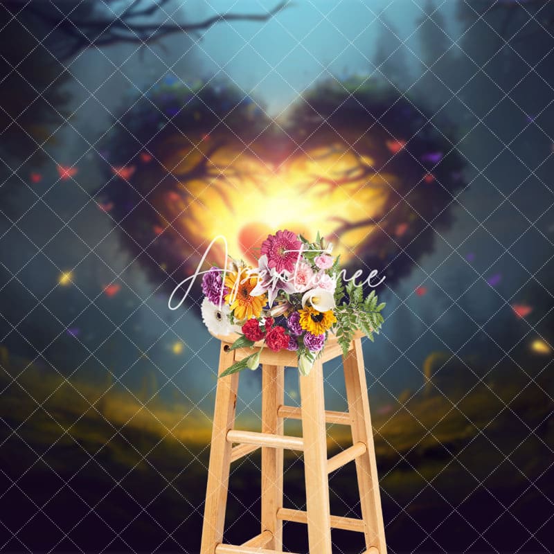 Aperturee Night Forest Lighted Heart Valentines Day Backdrop