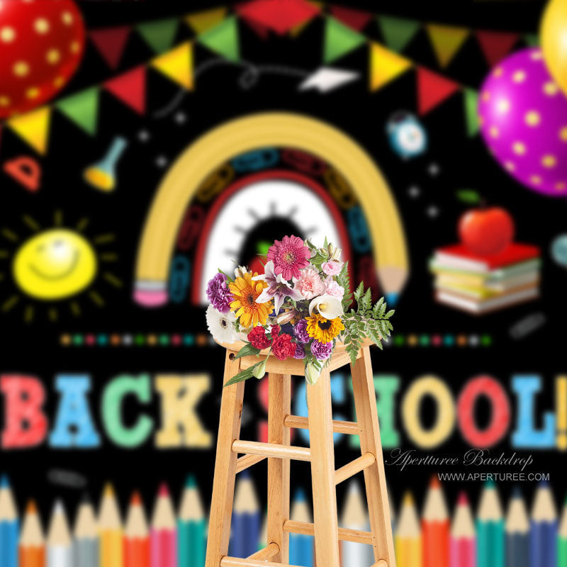Crayon Stationery Rainbow Black Back To School Backdrop