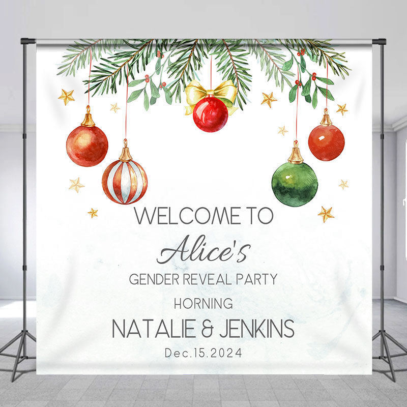 Custom Name Bauble Christmas Gender Reveal Backdrop