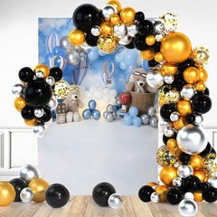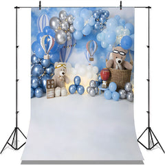 Royal Blue Balloon Teddy Bear Birthday Backdrop