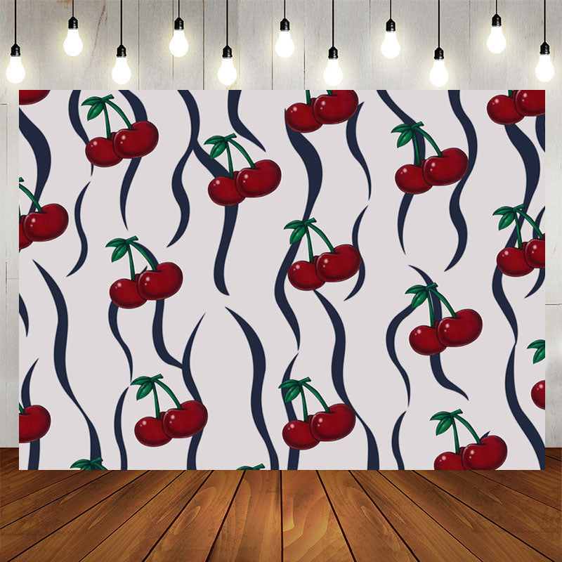 Vintage Tile Pattern Cherry Backdrop For Birthday Party