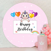 Circle Little Unicorn And Ballon Round Birthday Backdrop