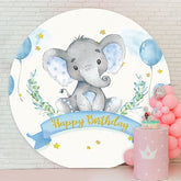 Blue Ballons Round Gold Happy Birthday Backdrop