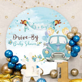 Blue Elephant Ballon Round Baby Shower Backdrop