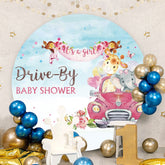 Round Car Flower Bear Pink Baby Shower Backdrop