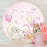 Pink Its A Girl Ballon And Bear Round Baby Shower Backdrop