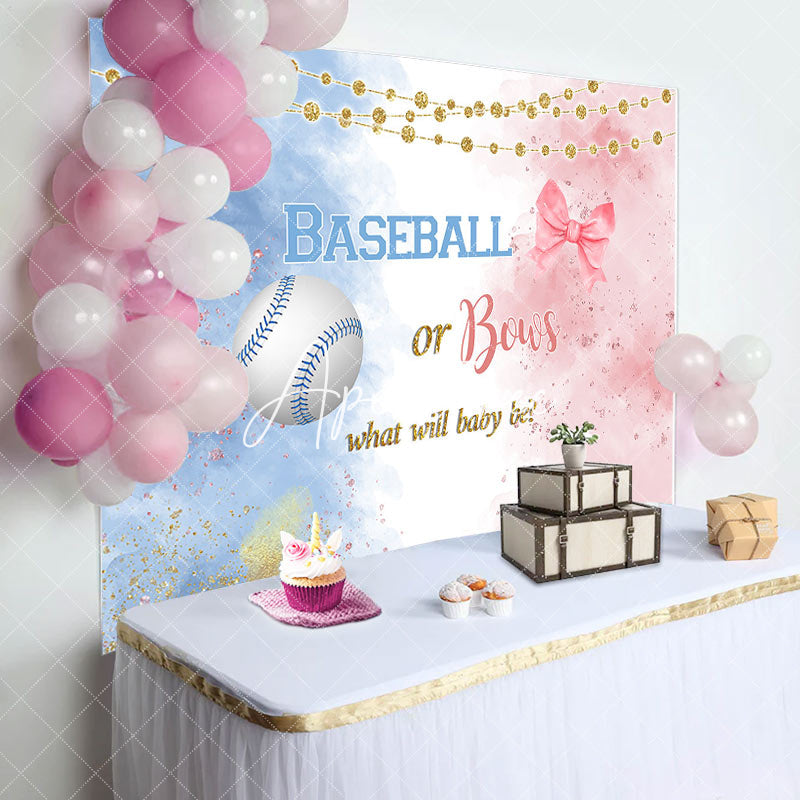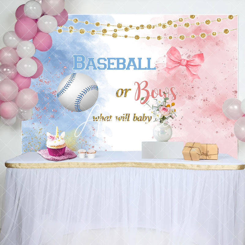 Aperturee Baseball Or Bows Light Strip Gender Reveal Backdrop