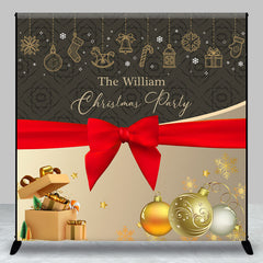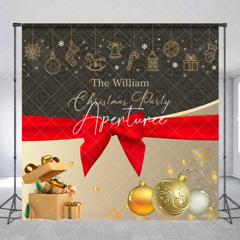 Aperturee Christmas Vibe Grey Gold Custom Name Party Backdrop